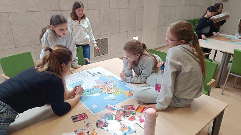 V pondělí 5. 5. 2025 jsme zavítali do knihovny Jiřího Mahena na Kobližné. Přivítaly nás dvě milé lektorky a při prezentaci nás seznámily s historií i současností Evropské unie. Děti se dozvěděly o výhodách EU a o jednotlivých státech doplňovaly různé zajímavosti. V druhé části programu žáci pracovali ve skupinách. Skládali puzzle slepou mapu EU, přiřazovali ke státům vlajky, plnili tajenky a doplňovačky a také si složili origami . Děti byly aktivní a spoustu toho věděly.